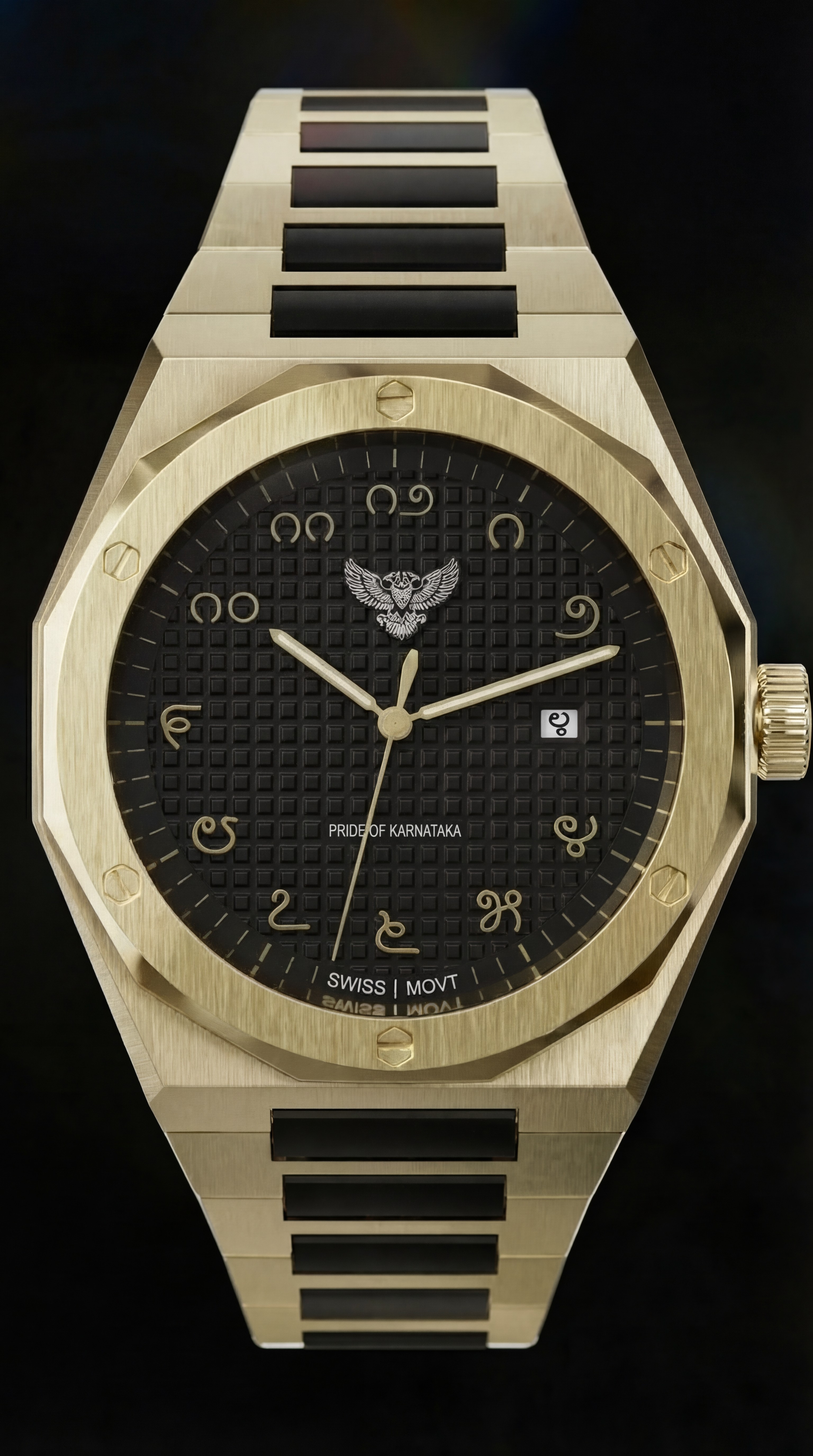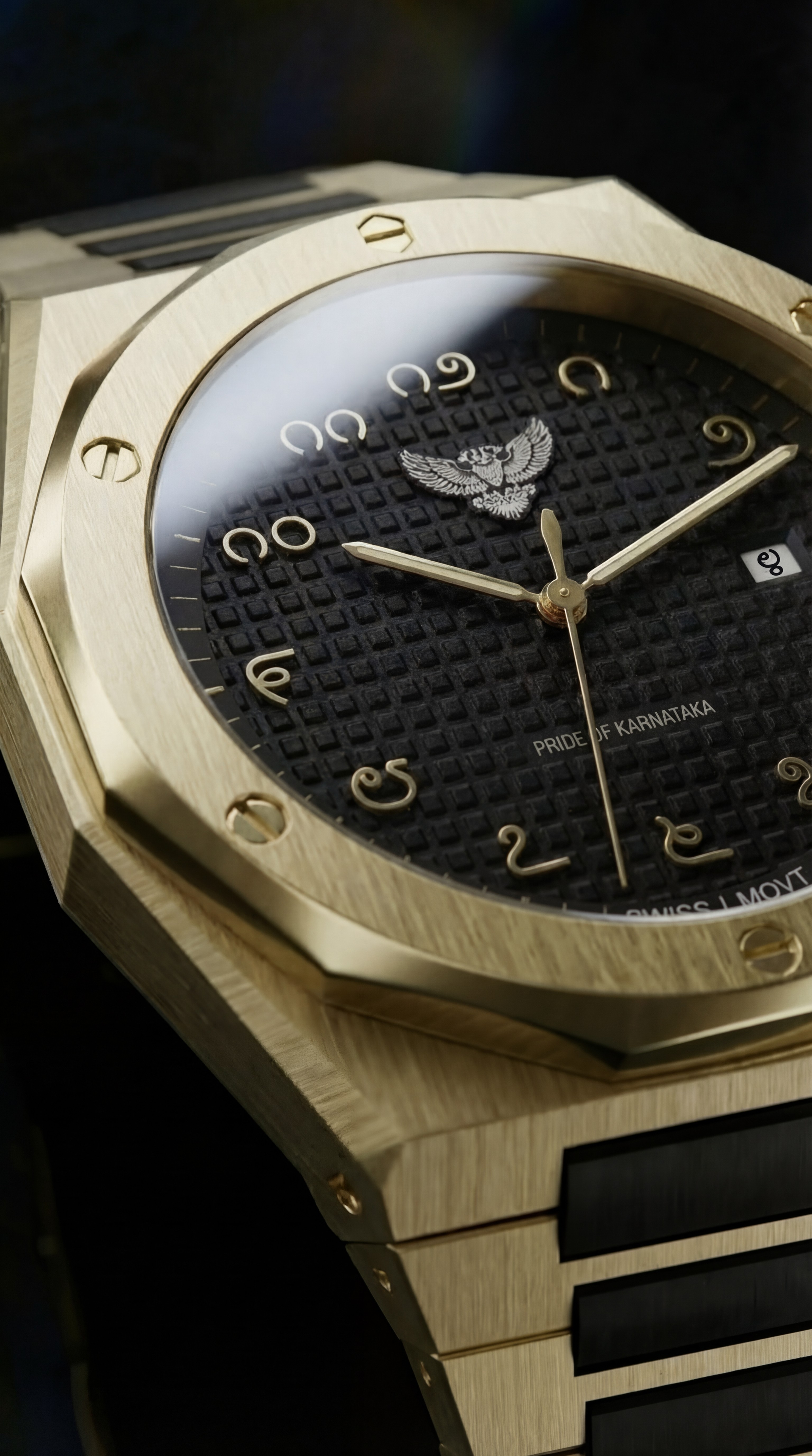 Captured On The dial with Kannada Numerals, and and the powerful emblem of the Gandaberunda – an ode to Karnataka’s strength and rich history