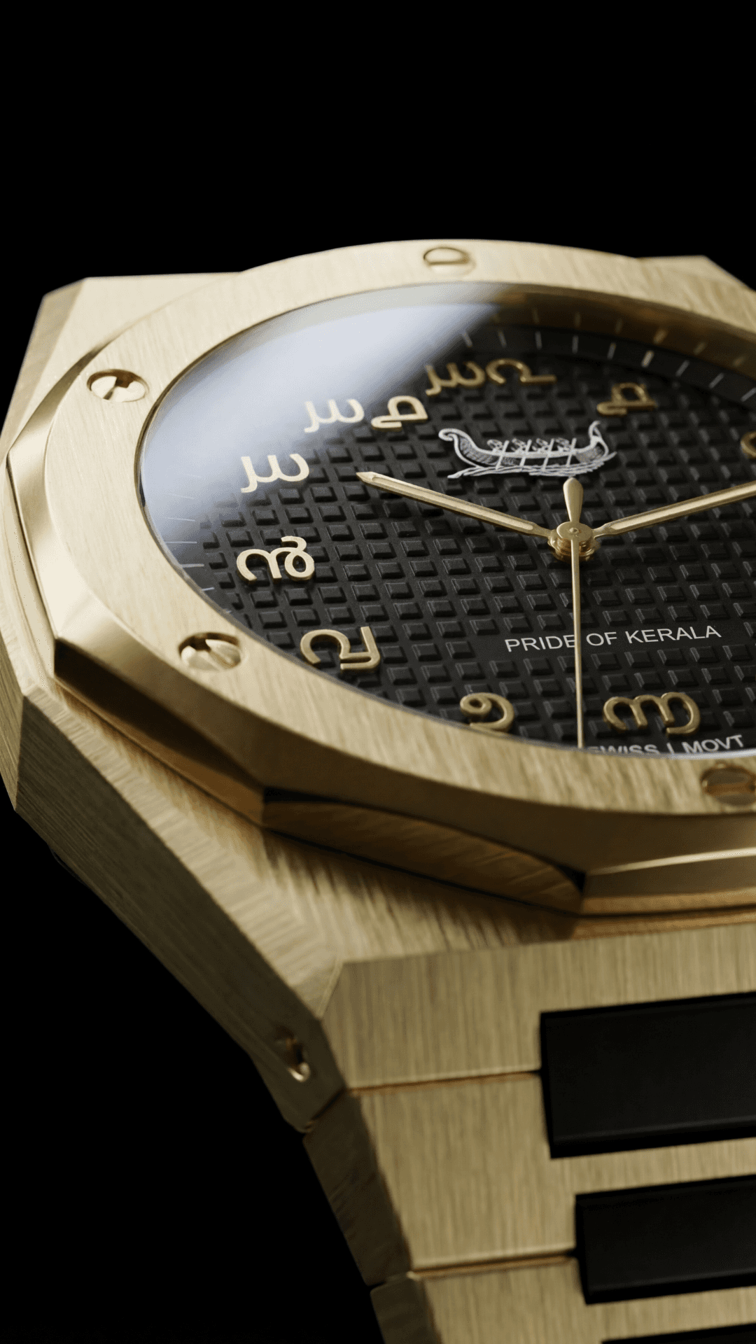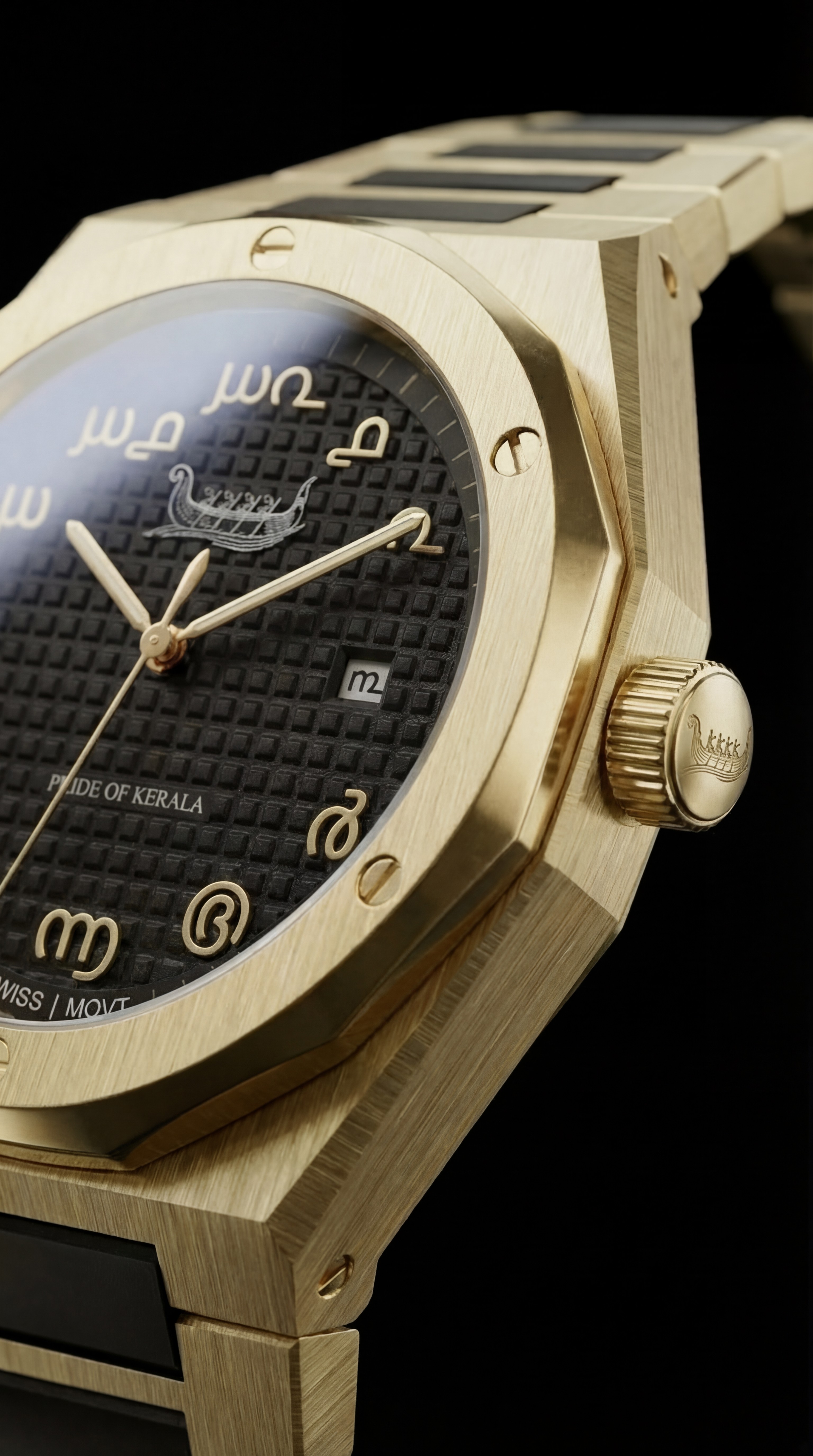 Kerala: Captured On The dial with Malayali Numerals, and and the powerful emblem of a Chundan Vallam (Snake Boat) – an ode to Malayali strength and legacy